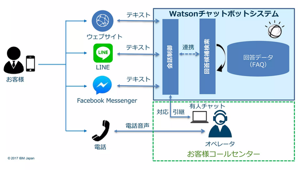 図1:IBM Watsonチャットボットの仕組み(出典:日本IBM)拡大画像表示