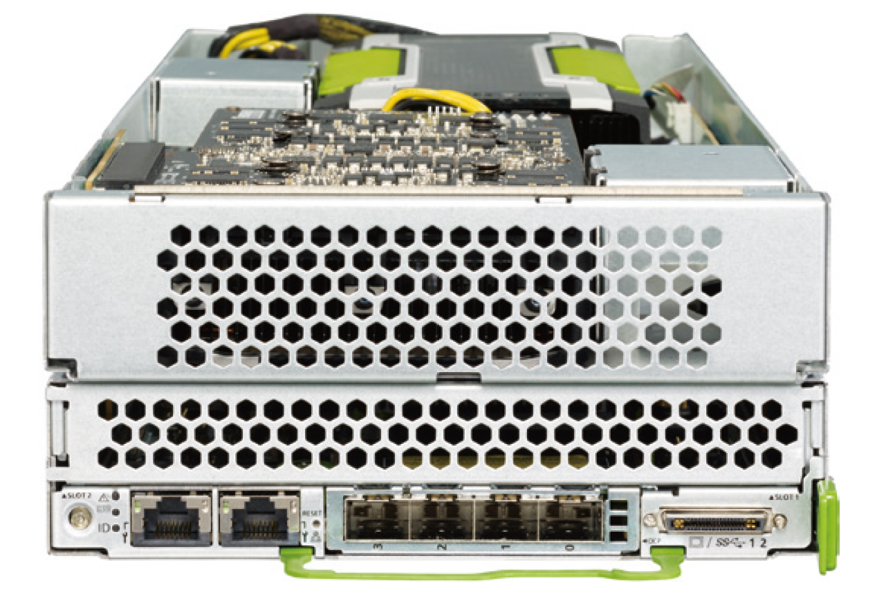 ABCIの中核を成す計算システムは、1088台の「PRIMERGY CX2570 M4」(写真1)で構成する。CPUはIntel Xeon Goldをサーバー1台あたり2CPU(計2176CPU)、GPUはNVIDIA Tesla V100をサーバー1台あたり4基(計4352基)使う。サーバー内蔵ストレージは、NVMe規格の「Intel SSD DC P4600シリーズ」を採用した。
