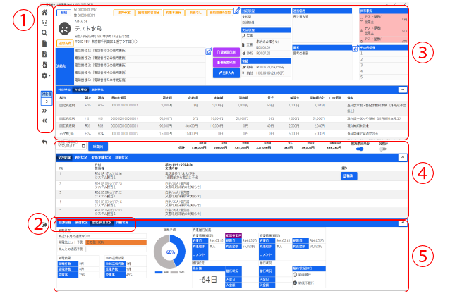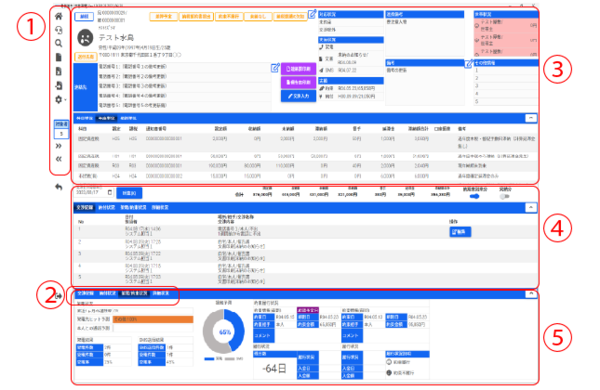 画面1:「CARS 催告業務システム」の画面例。①ツールバー、②各種情報タブ、③滞納者情報、④滞納情報、⑤ヒット率予測で構成する(出典:米アイティフォー)拡大画像表示