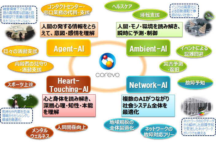 図1:ディープラーニングを活用した音声認識エンジン「corevo(コレボ)」を構成する4種のAI(出典:NTT)拡大画像表示