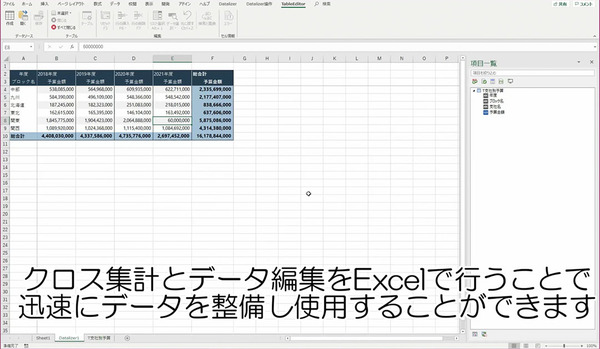 画面1:クロス集計とデータ編集をExcelで実行(出典:ウイングアーク1st)拡大画像表示
