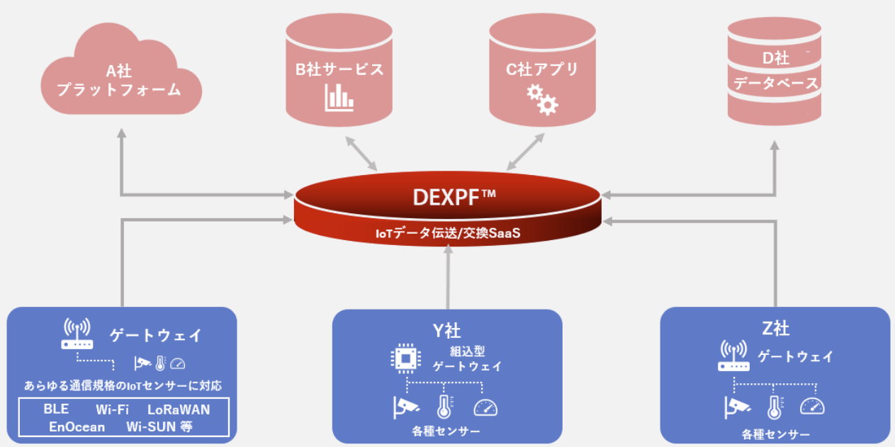 図1:IoTデータの伝送基盤「DEXPF」の構成図(出典:ぷらっとホーム)拡大画像表示