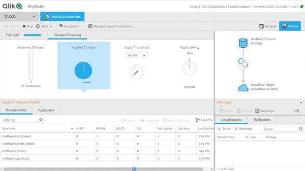 画面1:「Qlik Replicate」の画面例(出典:米Qlik Technologies)拡大画像表示