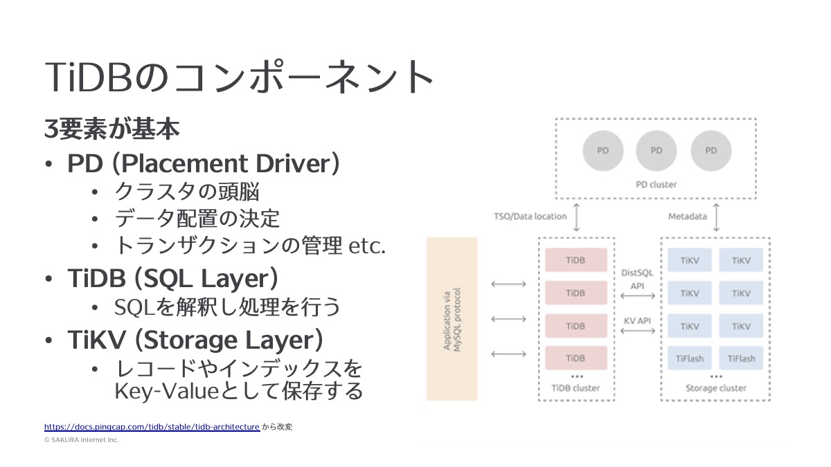 図1:「TiDB」のコンポーネント(出典:さくらインターネット)拡大画像表示