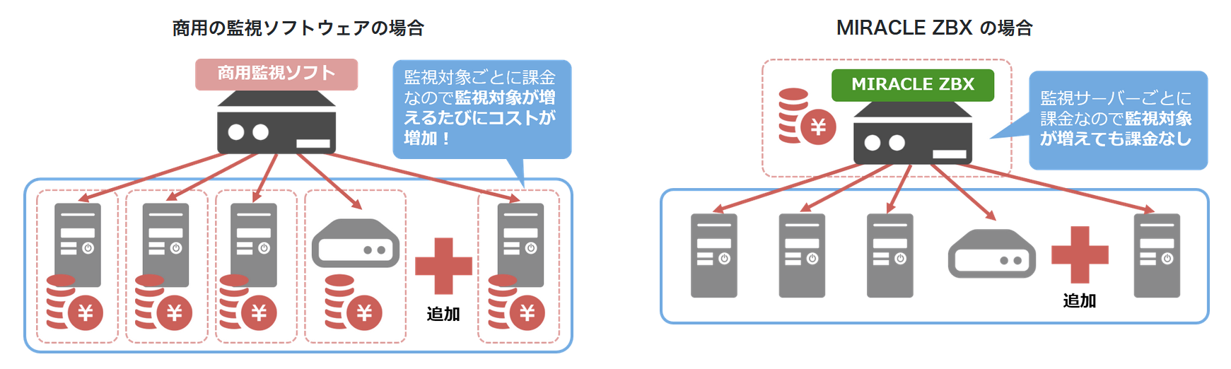 図1:「Zabbix」と「MIRACLE ZBX」の違い(出典:サイバートラスト)拡大画像表示