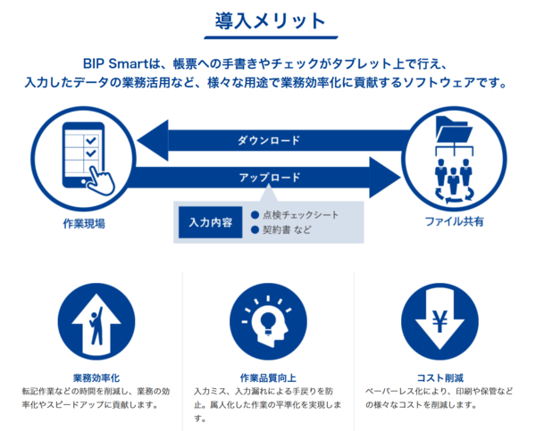 図1:タブレット帳票ソフトウェア「BIP Smart」の特徴(出典:PFU)拡大画像表示