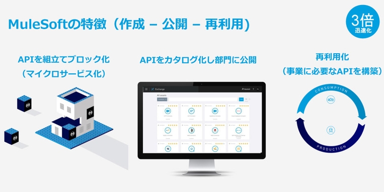 図1:アプリケーション構築プラットフォーム「MuleSoft」の特徴(出典:セールスフォース・ドットコム)拡大画像表示