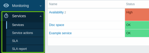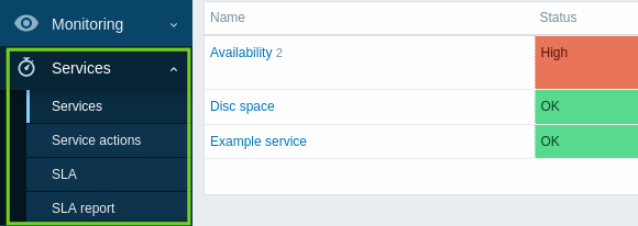 新版の「Zabbix 6.0」では、ビジネスレベルで捉えた“サービス”の単位で稼働状況を監視できるようにした。4つのメニューセクションからなるサービスメニューを追加している(図1)。