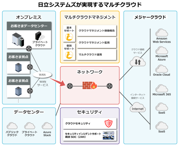 図1:「Gateway for Business Cloud」でマルチクラウド環境の構築・運用を支援(出典:日立システムズ)拡大画像表示