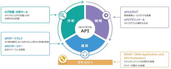 APIの公開に必要なユーザー認証機構として、OpenID Connectを使えるようにしている。複数のAPIの公開設定を統合して扱える管理機能なども標準で提供する。APIの管理には、ブリスコラが開発・提供するフルライフサイクルAPI管理製品「BAMs Series」を採用した。ネットワークのアクセス制御機能や、ログを監視・分析する機能も提供する。