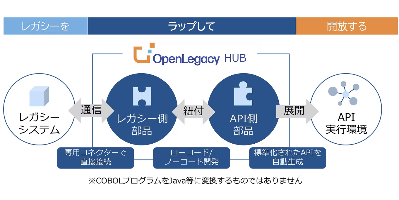 伊藤忠テクノソリューションズ(CTC)が販売を開始した「OpenLegacy」(開発元:米OpenLegacy、日本法人:オープンレガシージャパン)は、オープン系システムからメインフレームにアクセスするためのWeb APIをノーコード/ローコードで生成するツールである。最短で従来比10分の1程度の開発期間で新規サービスを提供可能だとしている(図1、関連記事:レガシーシステム接続用Web APIをローコードで生成する「OpenLegacy HUB」)。