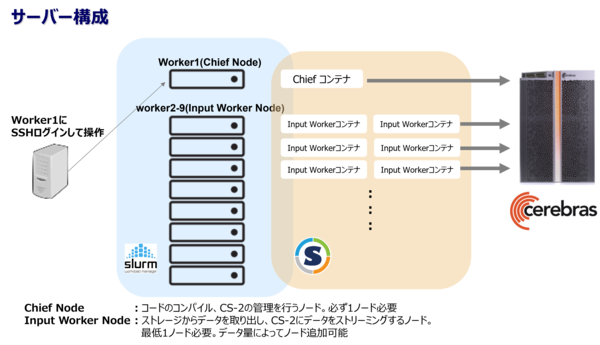 学習用のデータセットを用意して数行のコマンドを投じると、LLMを学習させられる。ゼロからモデルを学習させることも、オープンソースのモデルをベースに最小限のデータセットを用意してファインチューニングさせることも可能である。CS-2の利用方法については、TEDのエンジニアが技術サポートを提供する。