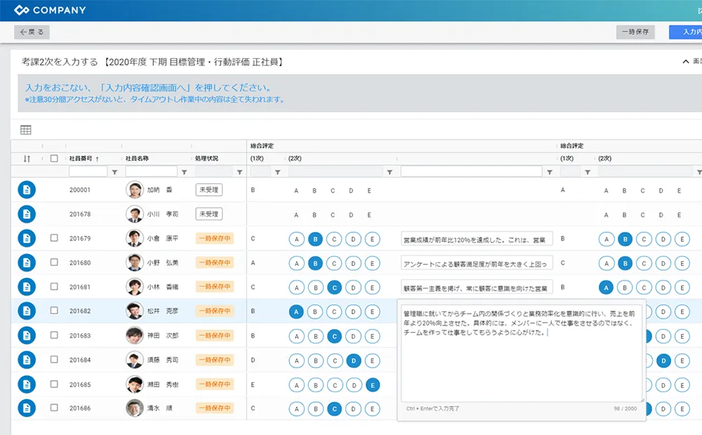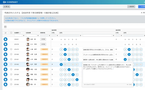 画面1:「COMPANY」の人事管理画面例(出典:Works Human Intelligence)拡大画像表示