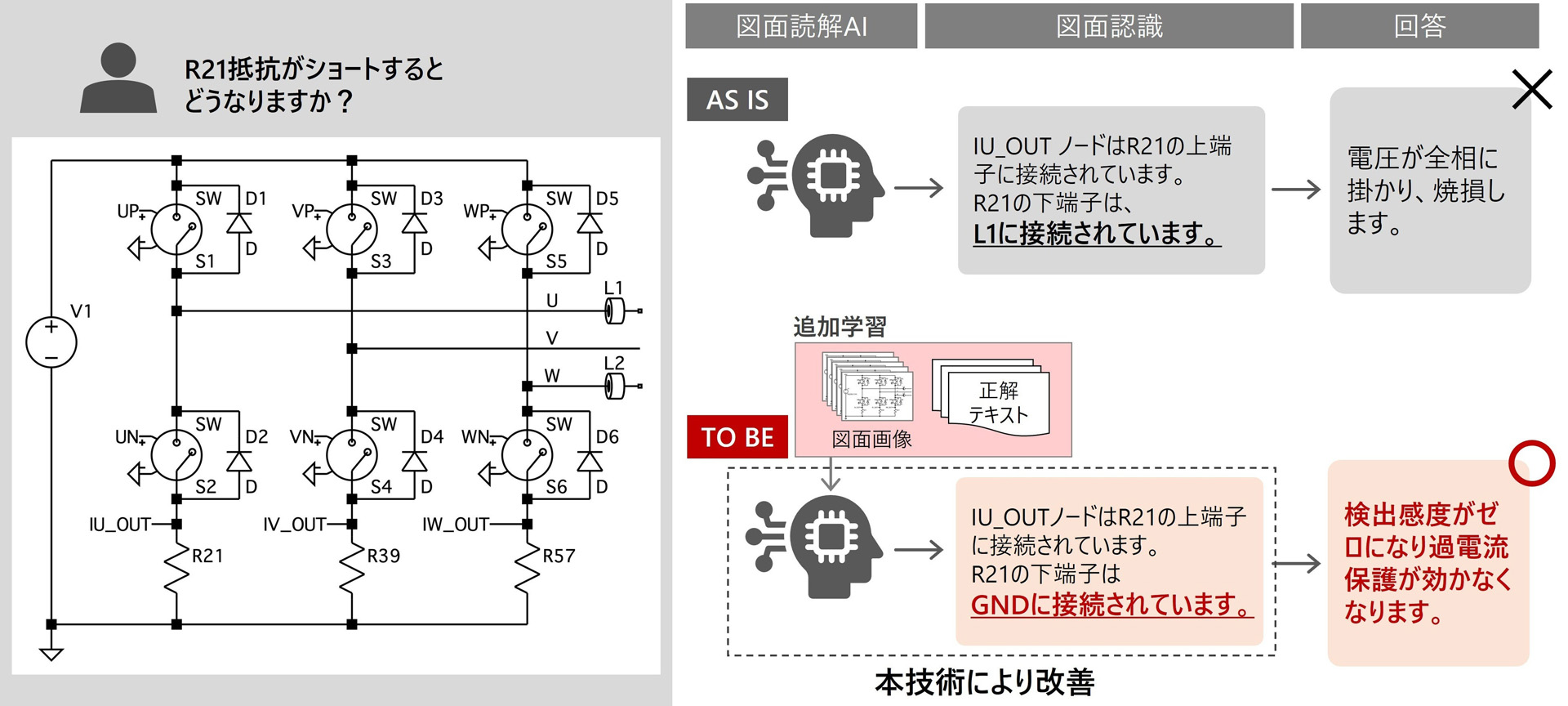 日立製作所は2025年10月3日、建設などの現場で用いる電子回路図や配管図、配電図などの図面を、生成AIが高精度に認識し学習する技術を開発したと発表した。図面画像と接続関係を示したテキストデータをペアで追加学習させる手法によって、電子回路図の接続関係の認識精度が従来比で約220%向上したという。
