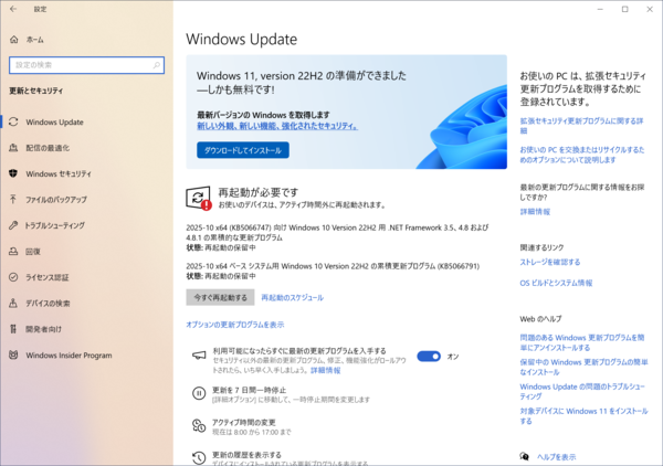 画面2:Windows 10に拡張セキュリティ更新(ESU)プログラムを適用していれば、2025年10月14日以降も重要なセキュリティ更新パッチが提供される拡大画像表示