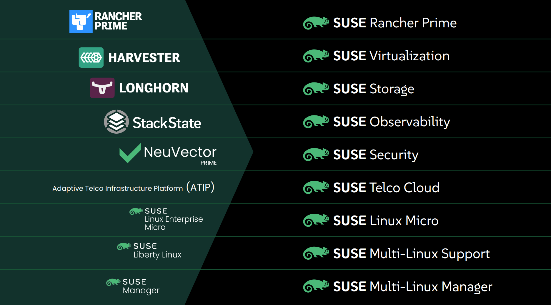 近年のSUSEはLinuxに加えて、2020年に買収で得たKubernetesベースのコンテナ管理プラットフォーム「Rancher」やエッジコンピューティング向けの軽量OS「SUSE Linux Micro」、生成AI向けプラットフォームの「SUSE AI」など、商用OSSを軸にポートフォリオを充実させている。