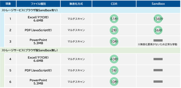 表1は、ファイルごとの無害化完了までの時間である。ファイルサイズなどによっては時間がかかるものもあるが、職員の操作を必要とせずにファイルを無害化できた。ネットワンとSCSKは、この結果をもって、セキュリティの強化と自治体職員のシステム操作負荷軽減を実証したとしている。