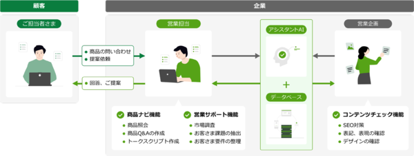 事前調査や資料作成、提案段階の要件抽出、製品比較表の作成など各種のプロンプトを用意している。また、用語集などのブランドガイドラインを学習し、Webサイトやカタログの表現がガイドラインに沿っているかをチェックする。