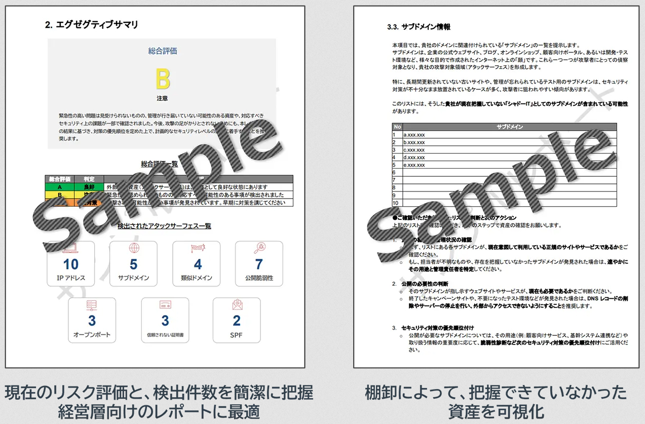 図1:「ASM サービス」で得られる納品物の1つである日本語レポートPDFのサンプル(出典:サイバートラスト)拡大画像表示