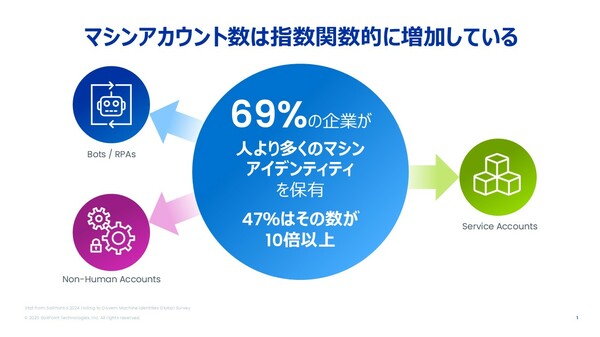 こうした生成AIやAIエージェントの普及が、「マシンアイデンティティ」の増加に拍車をかけています。マシンアイデンティティとは、サーバー、アプリケーション、IoTデバイスなどの人間以外のエンティティに割り当てられたデジタルIDのことで、ITサービス、製造、ヘルスケア、金融をはじめ多様な業界において、ネットワークに接続されたデバイス、ソフトウェア、自動化システムの利用が拡大するにつれ、のマシンアイデンティティの数が爆発的に増加しているのです。