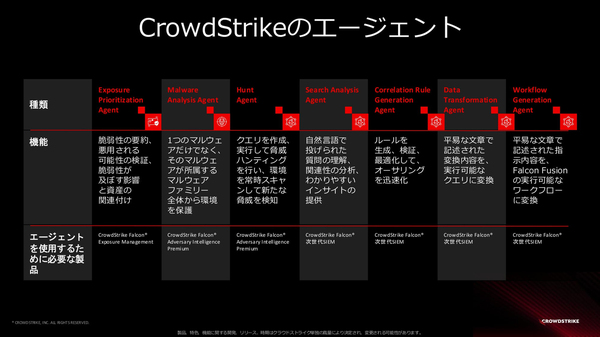 図2:システム運用を省力化するために新たに追加する7つのAIエージェントの概要(出典:クラウドストライク)拡大画像表示