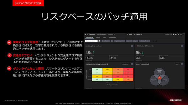 図3:適用するパッチをリスクベースで判定する機能の概要(出典:クラウドストライク)拡大画像表示