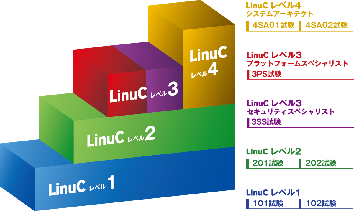 LinuCはこれまで、レベル1(Linuxシステムの操作・運用)、レベル2(Linuxサーバーの構築・管理)、レベル3(専門領域のスペシャリスト)に、2023年11月に最上位として「LinuCシステムアーキテクト認定試験」が加わった4つのレベルで、技術者が段階的にスキルを積み上げられる認定体系で運営されてきた(関連記事:LPI-Japan、Linux技術者認定の最上位「LinuCシステムアーキテクト認定試験」を2023年11月に開始)。
