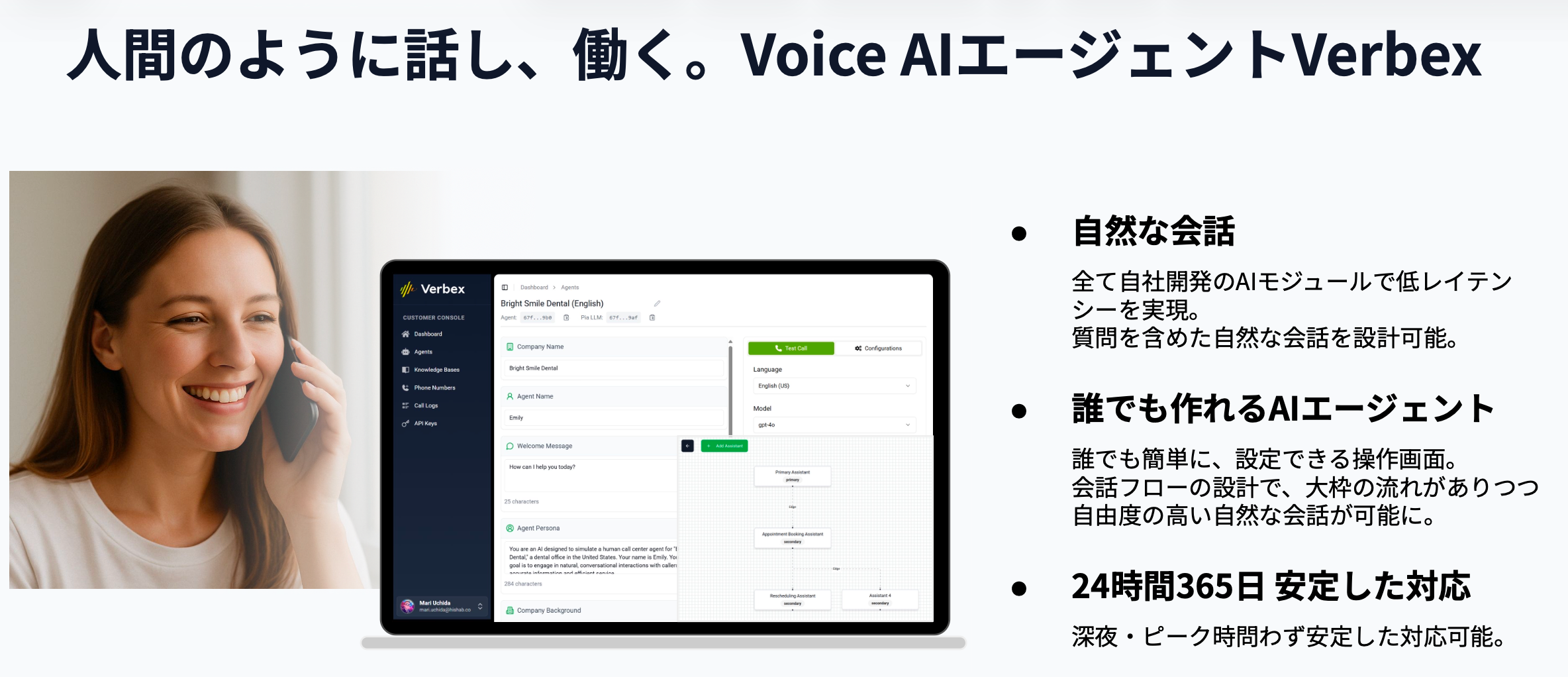 音声対話AIのスタートアップ、シンガポールVerbexの日本法人Verbex(旧社名:Hishab Japan)は2025年10月30日、日本国内で音声対話AI事業を展開すると発表した。バングラデシュ、日本、インド、シンガポールを拠点としている。まずはコールセンター向けシステムを販売する。現在、日本国内の複数企業がPoCに取り組んでいるという。