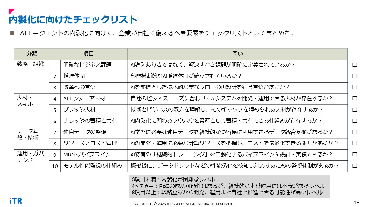 図4:内製化に向けたチェックリスト(出典:アイ・ティ・アール)拡大画像表示