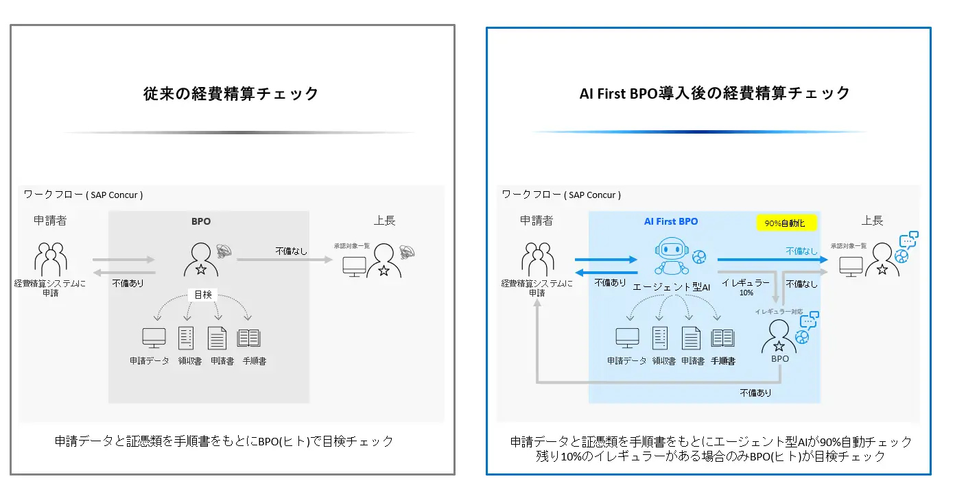 同社は2016年、経理業務の効率化を目的に、BPO(業務アウトソーシング)と、経費精算クラウドサービス「SAP Concur」などのSaaSを同時に導入した。2023年には、領収書原本の読み取り・照合を自動化するなど、業務プロセスの効率化に着手。一方、証憑や社内規定との整合性チェックや不備の検知などは担当者が目視で検査する必要があり、業務の負荷や精度などの面で改善が求められていたという。