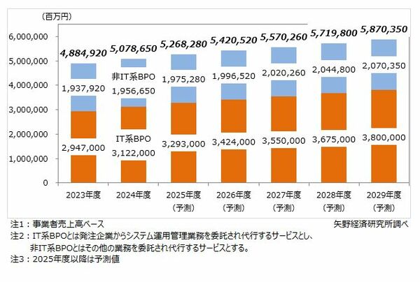 矢野経済研究所は、国内のBPO(業務アウトソーシング)サービス市場を調査した。調査期間は2025年8月~10月で、調査対象はIT系BPO事業者、印刷系BPO事業者、コールセンター系BPO事業者、事務系BPO事業者など。