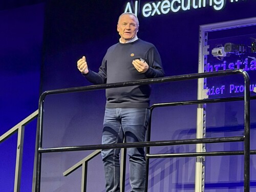 「AIの新境地:現実世界で挑む知能」と題したセッションに、IFS 最高製品責任者(CPO)のクリスチャン・ペダーセン(Christian Pederson)氏(写真1)が登壇。AIの新境地を「デジタル世界から物理世界へシフトすること」とし、その理由を、「世界の仕事の70%はデスクから離れた現場で行われているためだ」と説明した。
