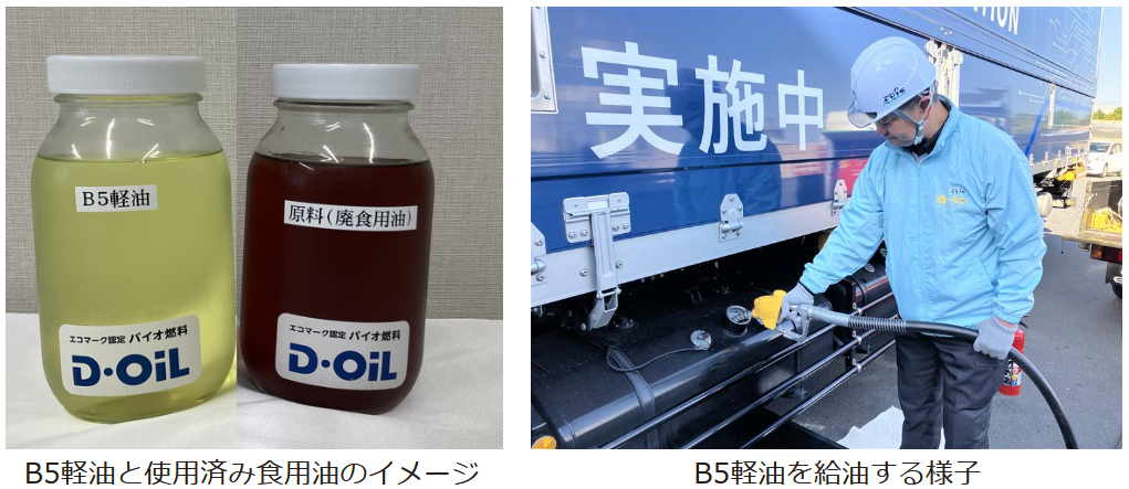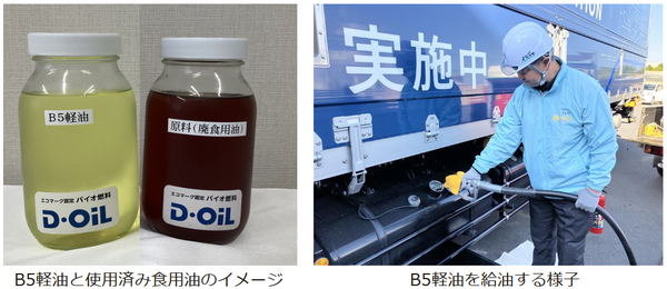 環境経営実践の一環として、実証で使う自動運転トラックの燃料にバイオ燃料を利用する(写真2)。セブン-イレブンは、地域の学校給食や一般家庭などから回収した使用済みの食用油を原料にしたバイオ燃料を軽油に混合した「B5軽油」を店舗配送車に試験導入している。この取り組みを拡大し、自動運転トラックにも適用する。