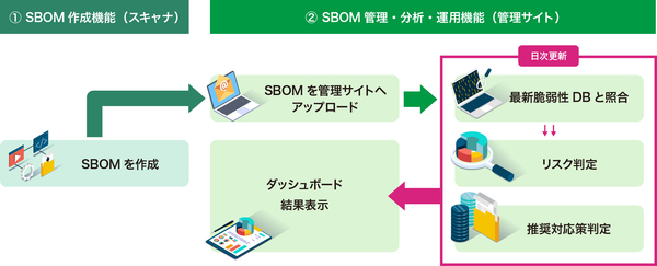 2026年1月より提供開始する。価格(税別)は初期費用が10万円で、利用料は管理対象10台まで月額5万円。11台以降は1台追加ごとに月額5000円を加算。また、ユーザーに代わってSBOMを作成するサービスを1台10万円で提供する(ユーザー先でのオンサイト対応は個別見積もり)。