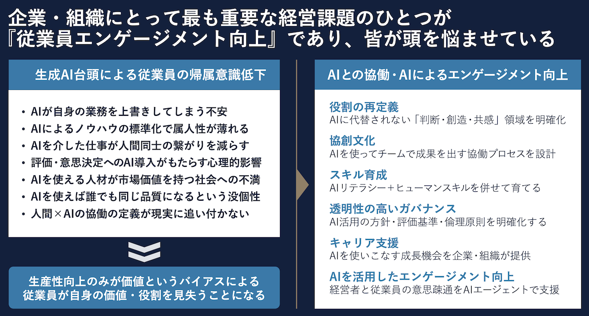 - 経営者と従業員の意思疎通を生成AIが支援することによる「AIを活用したエンゲージメント向上」