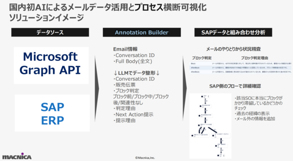 図4:AIによるメールデータ活用とプロセス横断可視化(出典:マクニカ)拡大画像表示