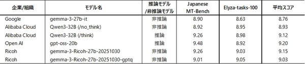 リコーは2025年12月8日、同社が開発・提供する日本語大規模言語モデル(LLM)の次世代モデルとして、オンプレミス環境での運用に適した270億パラメータの軽量LLMを開発したと発表した。Google Cloudのオープン版LLM「Gemma 3 27B」をベースに追加学習済みの複数のLLMを組み合わせるモデルマージ手法によって性能を強化している。モデル単体での提供のほか、GPUサーバーに搭載したアプライアンス製品を用意する。