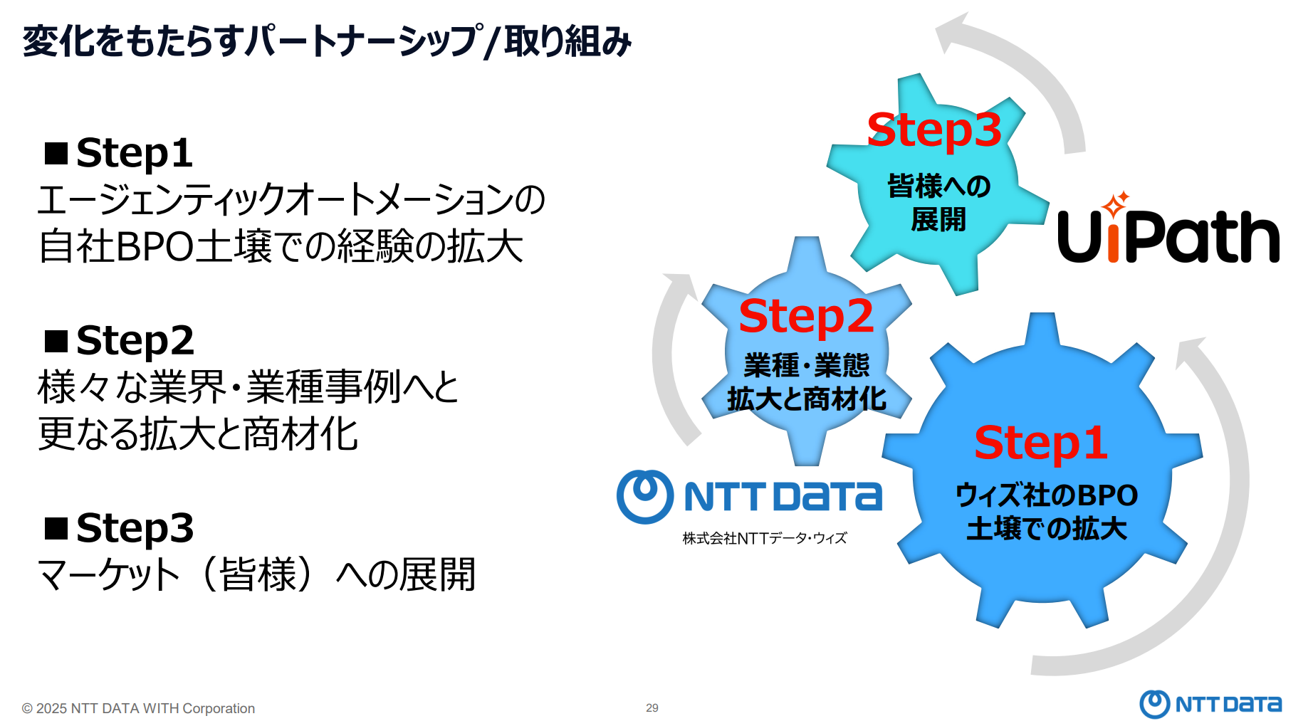 それを具現化し、普及させていく施策の1つに、同日に発表したNTTデータ・ウィズとの戦略的パートナーシップがある。日本市場でのエージェンティックオートメーションおよびBPO展開の加速に向けた基本合意を締結し、企業の生産性向上と業務変革を支援していく(図2)。