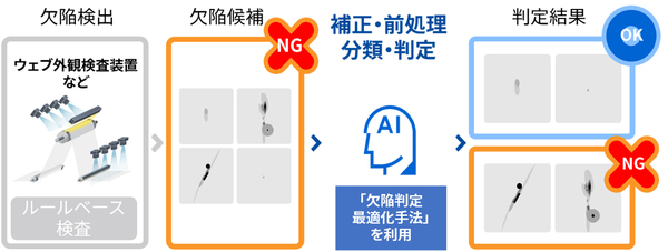 図1:良品を不良品と判定してしまう「過検出」を抑制する「欠陥判定最適化手法」の流れ(出典:東芝デジタルソリューションズ)拡大画像表示