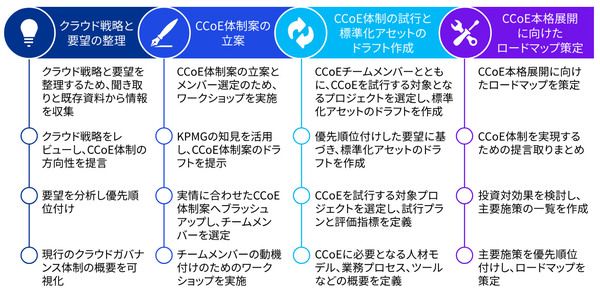 図1:CCoEの立ち上げから運営までを伴走支援するサービスの内容(出典:KPMGコンサルティング)拡大画像表示