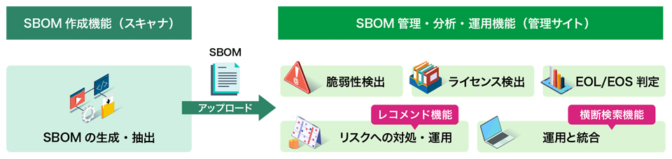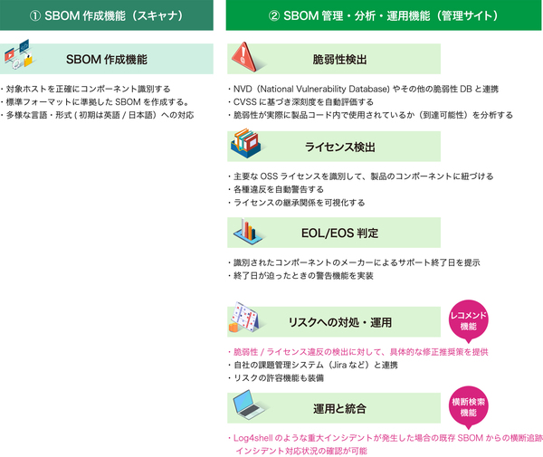 図1:「SBOM Archi」の「スキャナ」と「管理サイト」が提供する主な機能(出典:AGEST)拡大画像表示