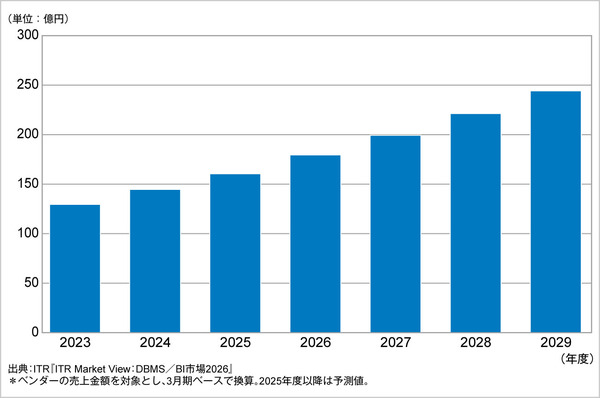 今回の発表は、市場調査レポート「ITR Market View:DBMS/BI市場2026」に基づく。同レポートは、DBMS/RDBMS、BI(データ分析/レポーティング、DWH/データレイク用DBMS)、データマネジメント(ETL/データプレパレーション、データカタログ、データ品質)、レプリケーション、MDM、データ仮想化の全9分野/市場を対象に国内37ベンダーへの調査から、2023~2024年度売上実績および2029年度までの売上予測を掲載している。