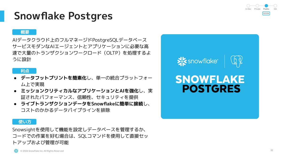 米Snowflake日本法人は2026年1月22日、説明会を開き、2025年11月開催の開発者向け年次コンファレンス「BUILD 2025」で発表した新機能群を紹介した。OLTP用途の「Snowflake Postgres」や、IcebergテーブルにSQLでアクセスするツール、SQLやPythonコードなどのバイブコーディング機能などを新たに提供している。