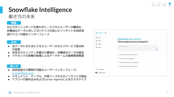 図6:対話型の生成AI利用環境「Snowflake Intelligence」の概要(出典:Snowflake)拡大画像表示