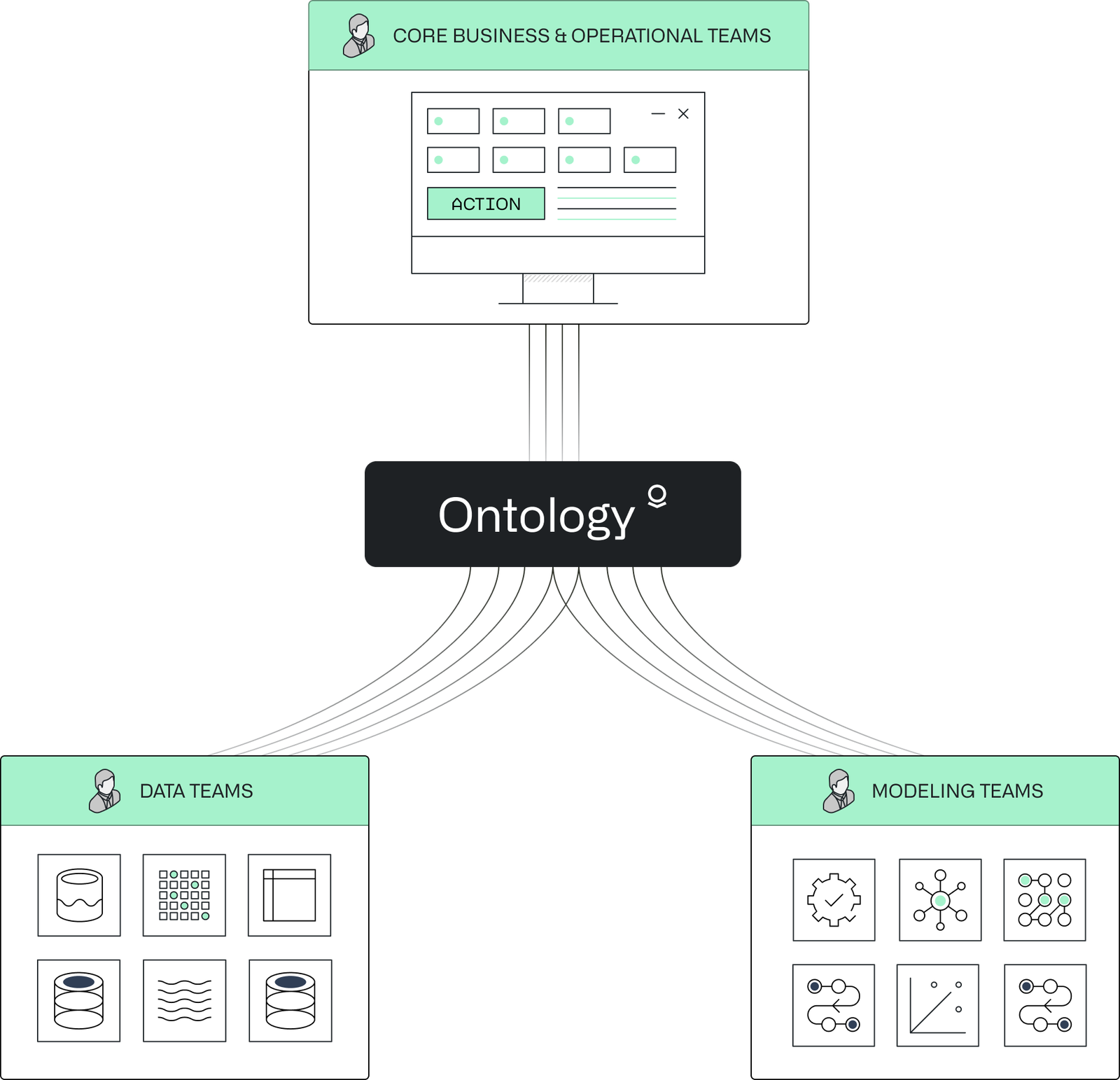 図1:データ統合プラットフォーム「Palantir Foundry」におけるオントロジーのイメージ(出典:Palantir Technologies Japan)拡大画像表示
