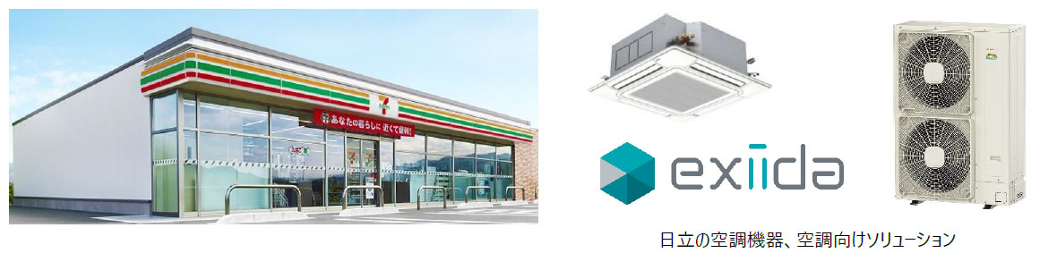 日立グローバルライフソリューションズ(日立GLS)が提供する、AIを活用した業務用空調のIoT省エネ/デマンド制御システム「exiida空調省エネ制御」を活用する。同システムに備わるAI制御により、店舗の空調機器の電力消費量を約3割削減することを目標にする。この目標は、事前に実施したセブン-イレブン5店舗でのPoC(概念検証)で得た結果から日立GLSが算出した推計値である。