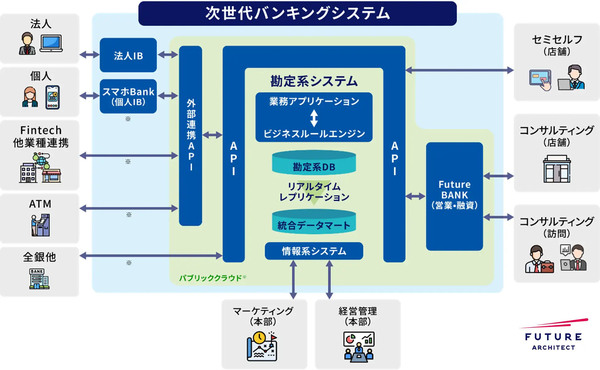 図1:SBI新生銀行が2030年度上期の稼働を予定する「次世代バンキングシステム」の概要(出典:フューチャーアーキテクト)拡大画像表示