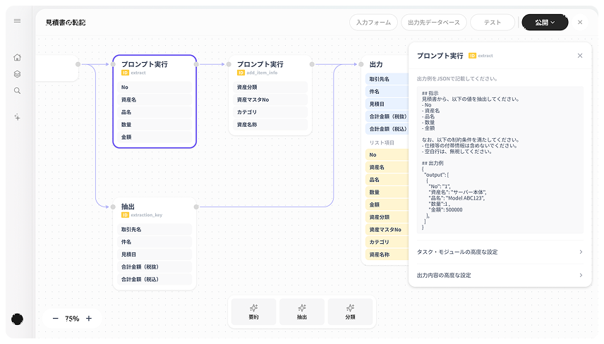 画面1:「Ai Workforce」に備わる、繰り返し業務を自動化するAIワークフロー機能の画面例(出典:LayerX)拡大画像表示