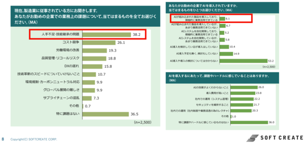 図1:製造業界における課題とAI活用の現状(出典:ソフトクリエイト)拡大画像表示