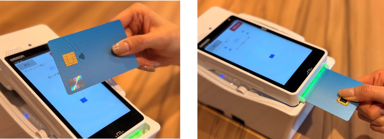 指紋認証カードでは、取引時にカード上で指紋認証による本人認証ができるため、スマートフォンと同様、金額上限のない非接触決済が可能になる。また、ICカードを挿し込む接触決済でも、指紋認証で本人認証を行うため、暗証番号の入力が不要になる。